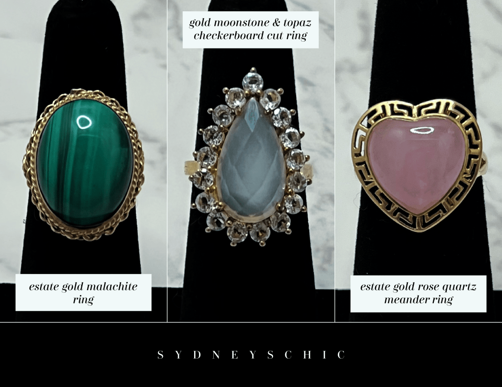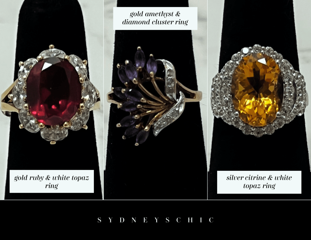 Below I will include pictures of some of my own rings so you can follow along with me and while I explain things, I want you to be thinking about which of these options (if any) your love would love. If you want to drop a hint to your special someone, share this on your socials or email them the link—you know—for subtlety.
