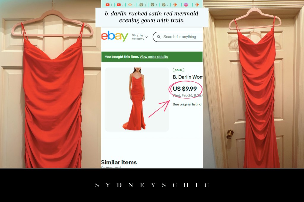 For this occasion, I chose a new backup dress that I had just snatched of the Ebay for $9.99 new with tags. Yes, you read that right. This dress was brand new with no wear, no damage, and brand new with the tags still attached for $10.00. I’ve included a screenshot of my purchase for proof. This is what we train for, people—this is why we shop! This red satin ruched cowl neck dress is from the brand, B. Darlin, and is usually sold in department stores. It is a good brand and it is a fairly affordable brand. This dress retailed for around $110.00 when I price checked it at various stores so I was thrilled! The dress is zipper and comes with padding though I’ll admit the cups could’ve been a bit bigger. It was sleek, comfortable, and didn’t require any hemming or alterations which also added to the money that I saved by purchasing it. The only concern that I had was the train but it wasn’t an issue at all and this turned out to be one of the most comfortable dresses I’ve ever worn so you’ll probably be seeing her around again soon!