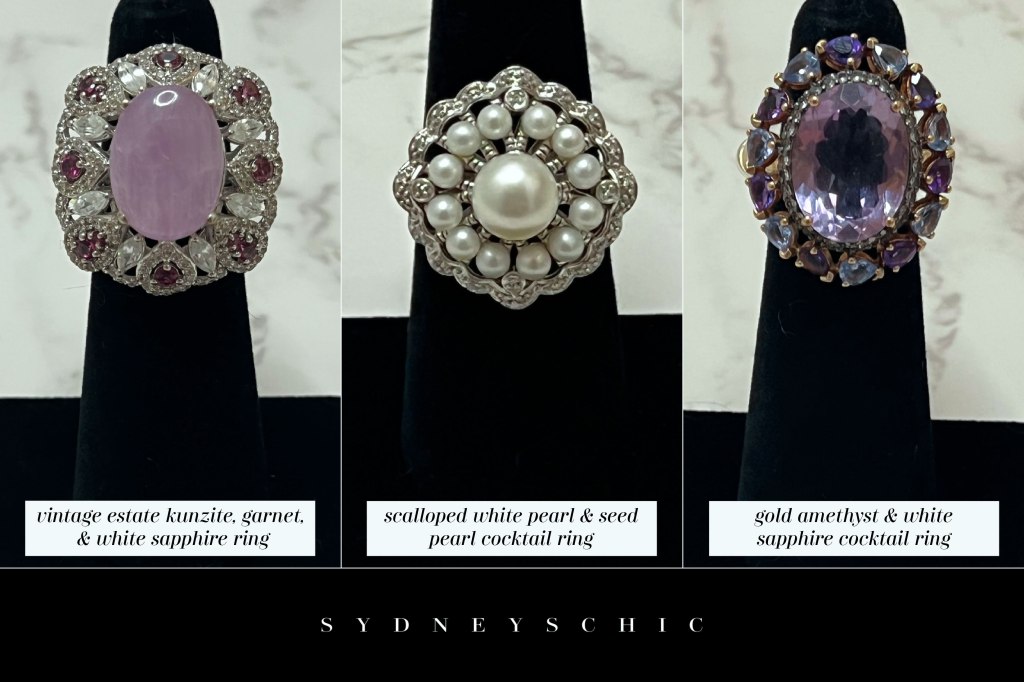 Cocktail rings have remained a triumphant pillar of modern fashion, shedding their exclusively formal connotations and embracing a more daily, individualistic style. While they still shine at glamorous events, today’s cocktail rings are equally at home adding a touch of drama to everyday looks. Designers are experimenting with bold, unconventional gemstones, sculptural settings, and unexpected materials, moving beyond the classic diamond centric designs of the past. This evolution allows wearers to express their personality and find something truly unique using cocktail rings as a statement piece to complement anything from jeans and a t shirt to a chic power suit. The cocktail ring is all about confidence and self expression, a vibrant accent that elevates any outfit and reflects the wearer’s unique flair. I think it’s safe to say, it’s not going anywhere anytime soon!