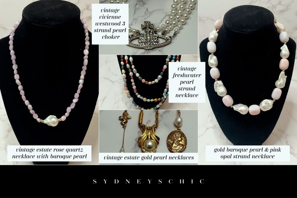 Today, chokers remain a popular accessory among the fashion savvy—a testament to their adaptable appeal and ever changing variations. They are available in a myriad of types, catering to diverse tastes and budgets though I don’t think you can ever go wrong with pearls. From delicate velvet ribbons and intricate lace designs evoking vintage charm to bold metal bands exquisitely embellished with gems exuding modern dignity, chokers reflect an ageless allure that seamlessly resonates with all trends. Whether worn as a subtle accent or a striking focal point, the choker continues to be a dynamic piece of jewelry connecting us to our personal style.