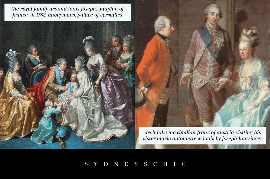 Archduke Maximilian Franz of Austria visiting his sister Queen Marie Antoinette and her husband, Louis by Joseph Hauzinger via wiki commons on the right side.
