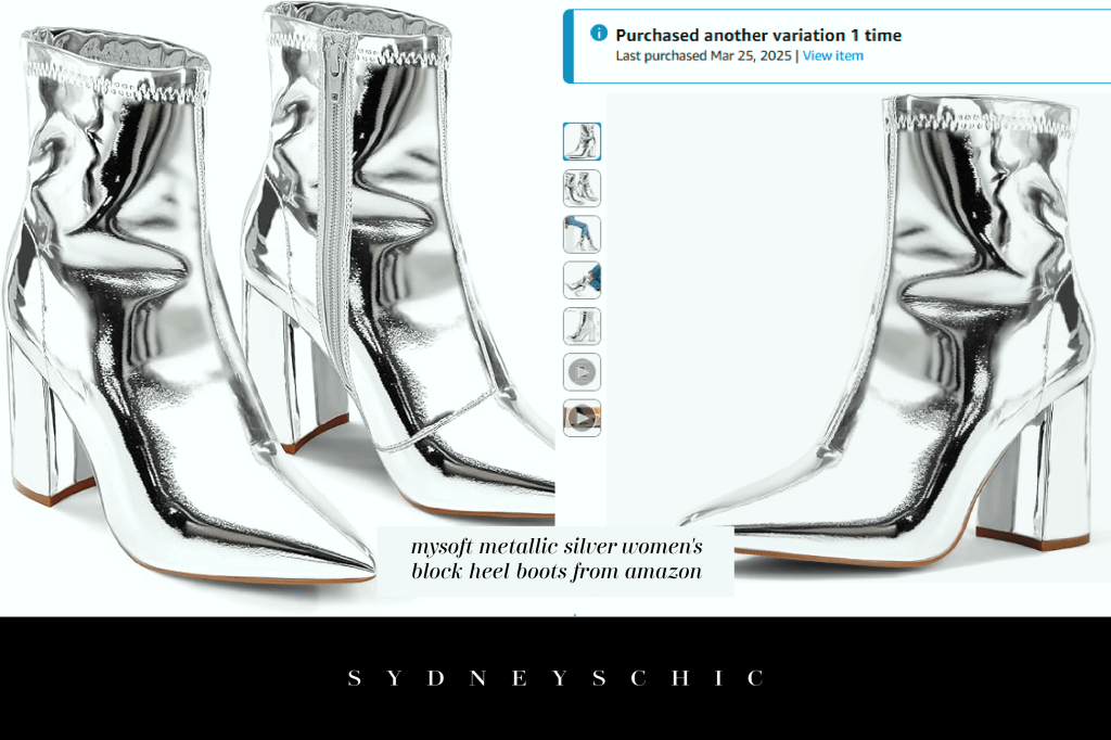 This past spring when I went to the annual event again with the same death trap of a parking lot, I was prepared! I snatched these stylish silver block heel boots for $23.99 from the amazon! They give me the height I need for the length of my gowns without the hassle of navigating a thin heel on unexpected terrain. The high enclosed shoe also ensures I won’t be walking out of my shoes or stumbling out of them either! Honestly, it’s a fantastic alternative that’s much easier to maneuver in a heavy dress.