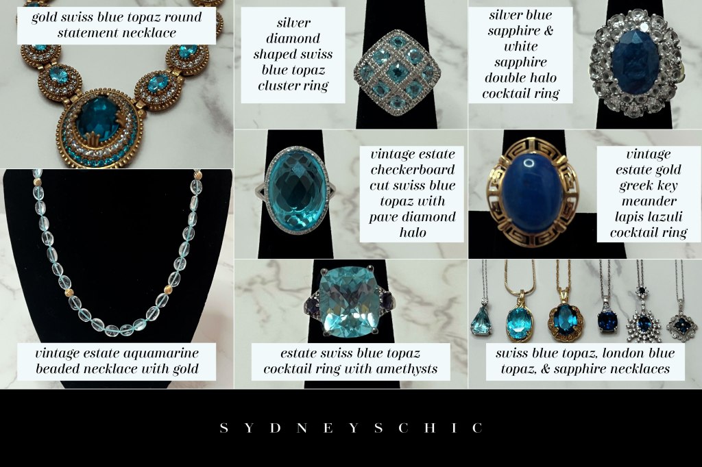 Sparkling accessories, such as jewelry, offer a dynamic way to align luxury with evolving color trends. In keeping with the concentration of this post, I will be particularly speaking about the use of vibrant blue gemstones. Made for fine jewelry, stones like topaz, lapis lazuli, sapphire, tanzanite, aquamarine, spinel, zircon, and iolite shine brilliantly in necklaces, bracelets, and earrings, delivering a touch of opulent glamour with their rich toned hues set in gleaming metal.