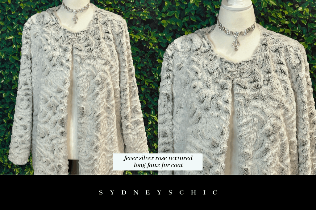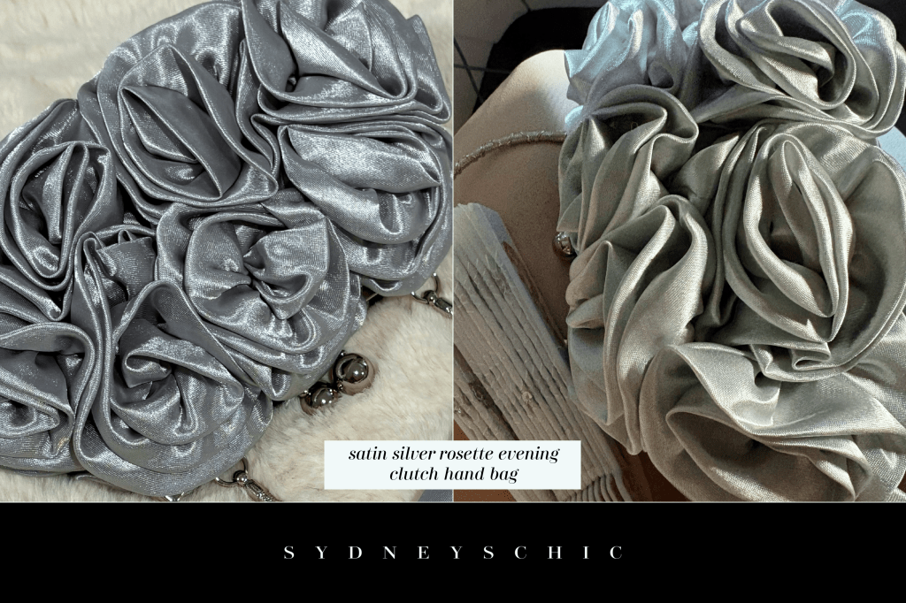 I could not find a Reticule to match my dress nor would it fit an iphone if I had so I settled for a rectangular evening clutch. I wanted it to match the silver details of my jewelry, dress, and coat but I also aimed to find something floral to pull the rest of the outfit together. I kept drawing a blank until I remembered the red rose handbag from last year’s gala look and decided to see if it came in silver. To my luck, it sure did! I purchased this SilTriangle bag from Amazon for $19.99. The bag is silver or gray and features large rosettes all over the structured bag with sterling hardware. Not only is it durable with an extra chain but it does indeed fit many things inside!