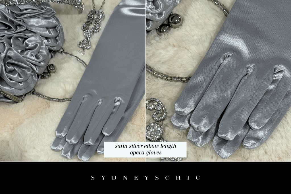 Given the silver detailing in my dress, I decided on these silver DreamHigh opera gloves to compliment my look. I could’ve worn white—which I thought about—because it goes with anything but I just felt like it was too on the nose and really wanted to emphasis the beadwork of my bodice. I also took this into account when I chose satin due to the fabric’s sheen matching the sparkle of the beads. If I were to style this outfit again, I would still choose silver every time. My event took place in the evening so the gloves that I wore were 21″ long and elbow length in following regency customs.